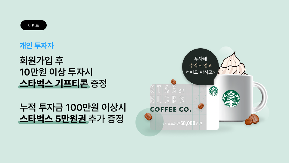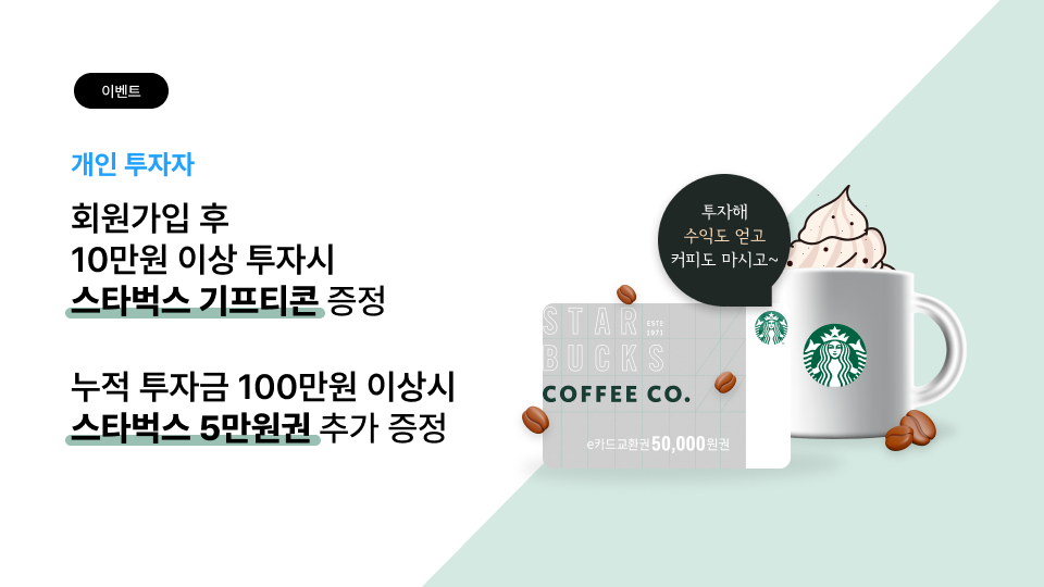 신규 회원가입 후 10만원 이상 투자하면 스타벅스 기프티콘 증정